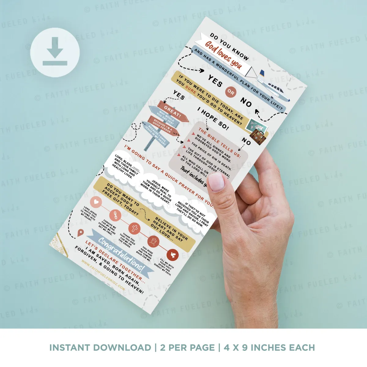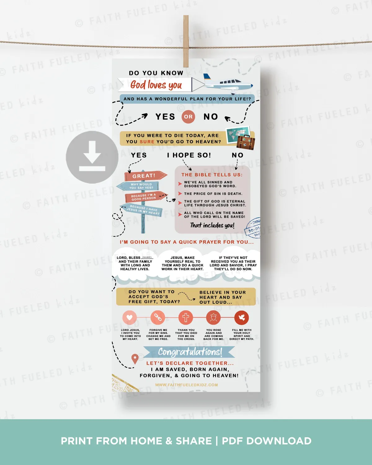 Our Gospel Tract Soul Winning Script makes evangelism fun for kids of all ages. Share the love of Jesus and the salvation message with EVERYONE around you using this colorful and engaging tract. This Salvation Tract Printable is designed to be easy to understand and perfect for children to use in sharing their faith.